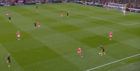 但从战术上来说,诺丁汉森林显然是准备得更充分的一方,因为姆贝乌莫和阿玛德-迪亚洛这一侧的进攻效率并不如此前三场那么亮眼,但诺丁汉森林通过中圈区域的争斗,所形成的进攻和射门相当频繁: